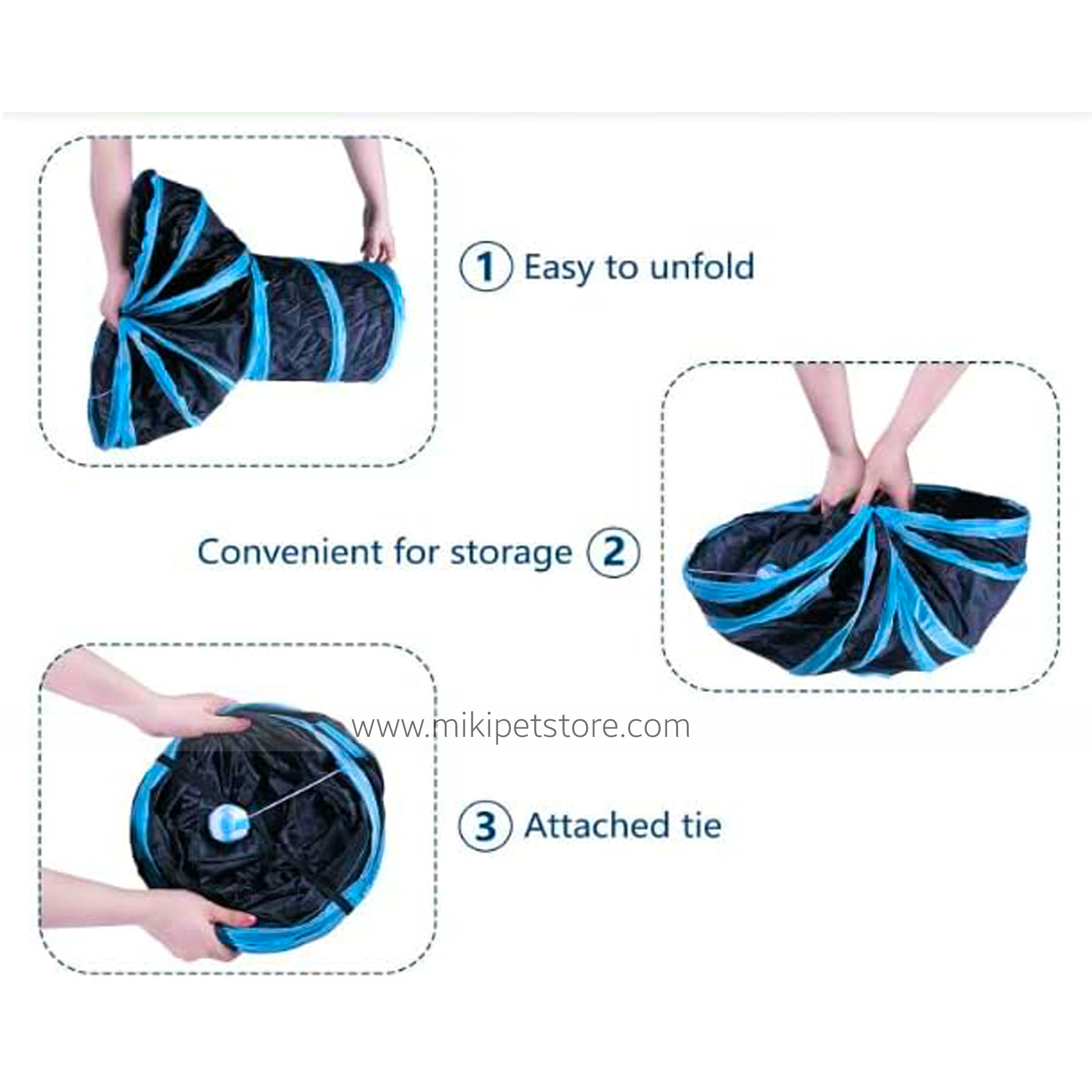 Keep your cat entertained and active with our 3-Way Collapsible Cat Tunnel! Designed for endless fun, this interactive play tube features three spacious tunnels, a peek hole for surprise pouncing, and a hanging toy ball to keep your kitty engaged. Made from durable, tear-resistant material, it’s perfect for indoor cats, kittens, and even small puppies. The collapsible design allows for easy storage and portability, making it ideal for small spaces. Encourage exercise, curiosity, and playtime with this must-have tunnel for your furry friend!