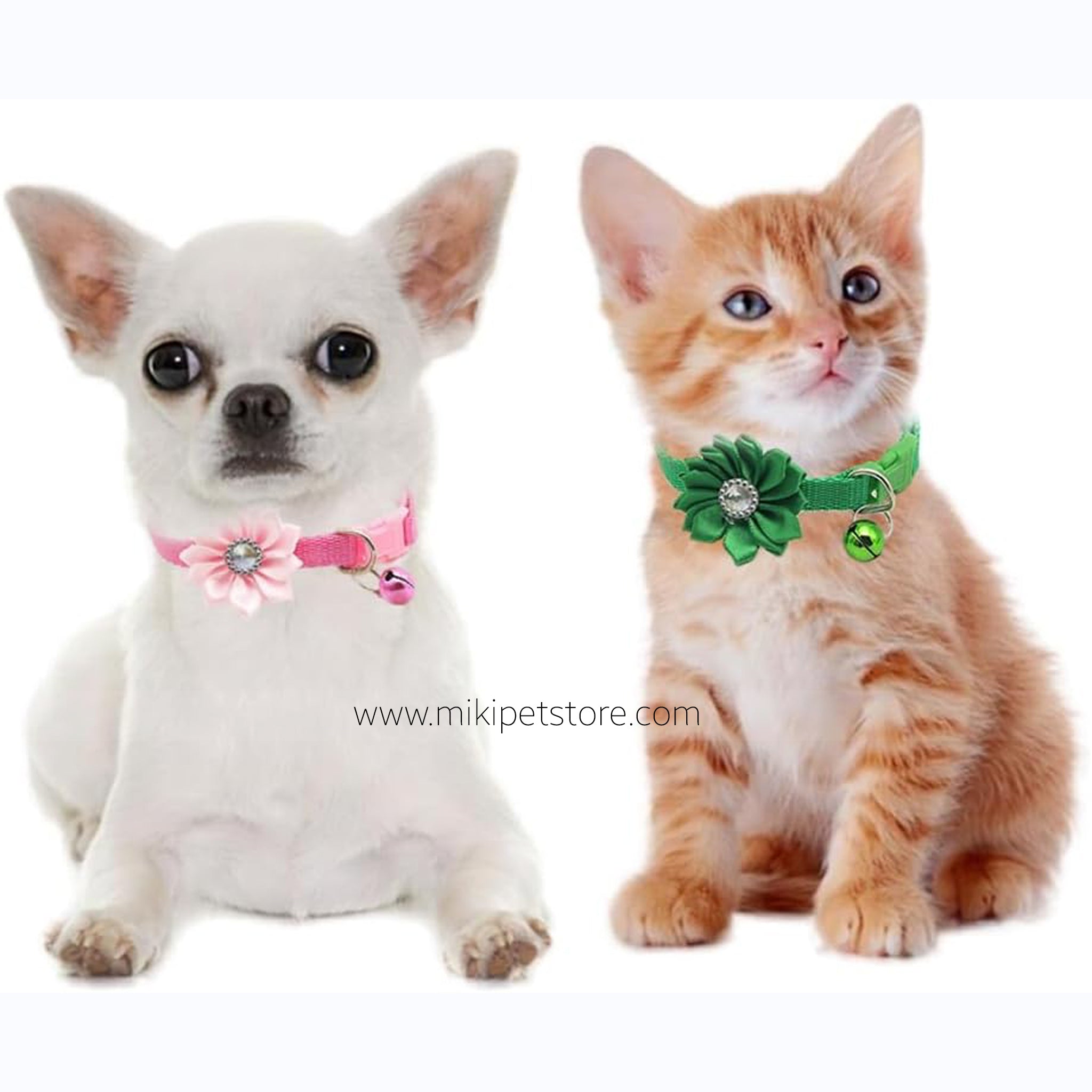 A stylish floral breakaway collar with a bell, designed for puppies and cats. Safe, adjustable, and perfect for adding a touch of charm to your pet’s look.