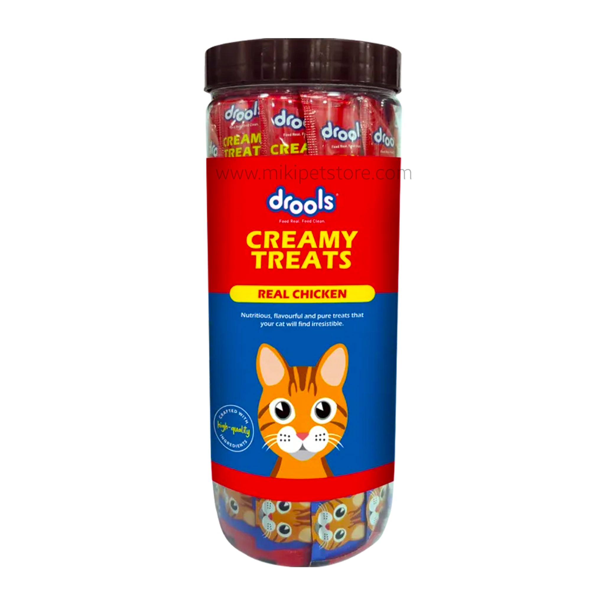 Reward your cat with a treat that is as nutritious as it is delicious with Drools Creamy Cat Treats with Real Chicken. This lickable cat treat offers a unique and interactive way to bond with your feline friend. Each tube is filled with a smooth, creamy puree made from real chicken and enriched with essential nutrients like Taurine and a blend of prebiotics. It’s the perfect, healthy indulgence that can be served directly from the tube, as a tasty food topper, or as a special reward.