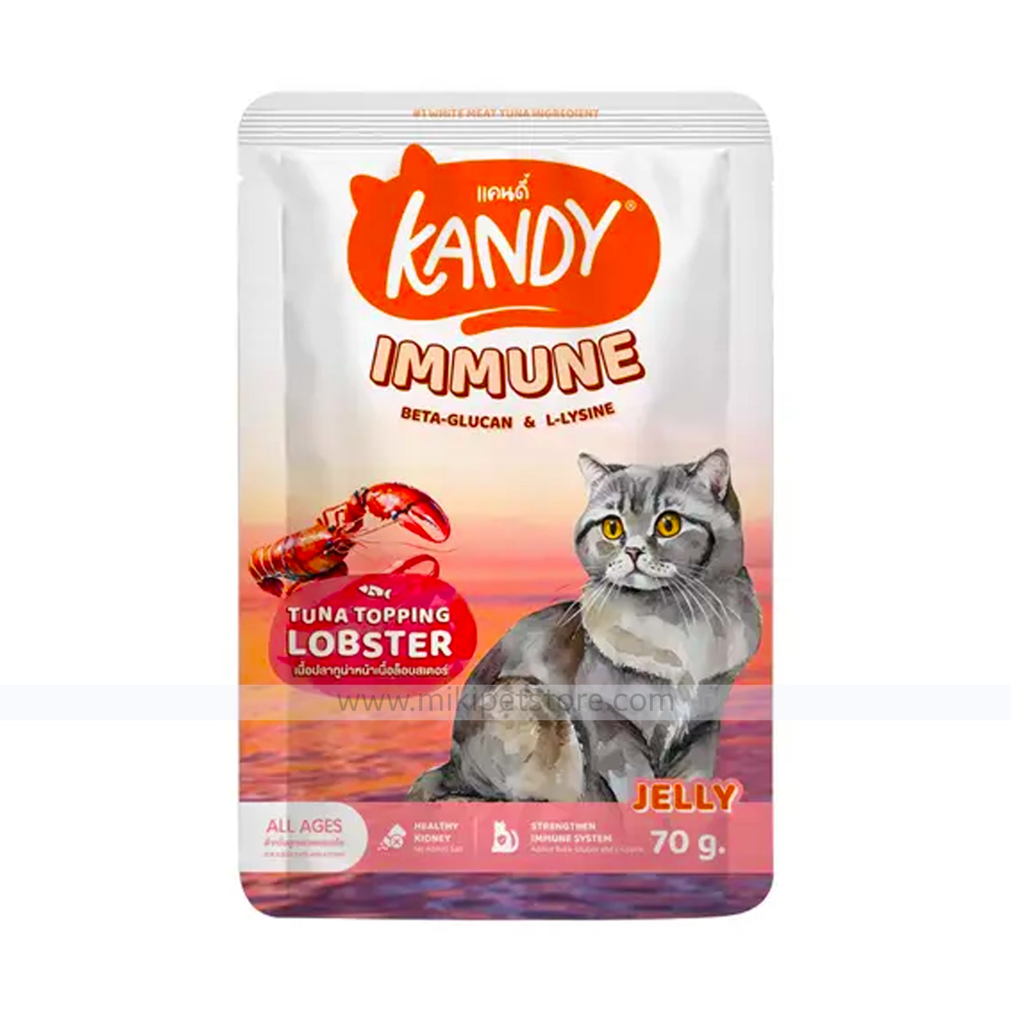 Support your cat’s immune health with Kandy IMMUNE Formula Pouch Tuna Topping Lobster in Jelly. This premium wet food is enriched with immune-boosting nutrients and antioxidants to help strengthen natural defenses. Made with succulent tuna topped with lobster in smooth jelly, it offers a gourmet taste cats adore while providing complete and balanced nutrition for all life stages.