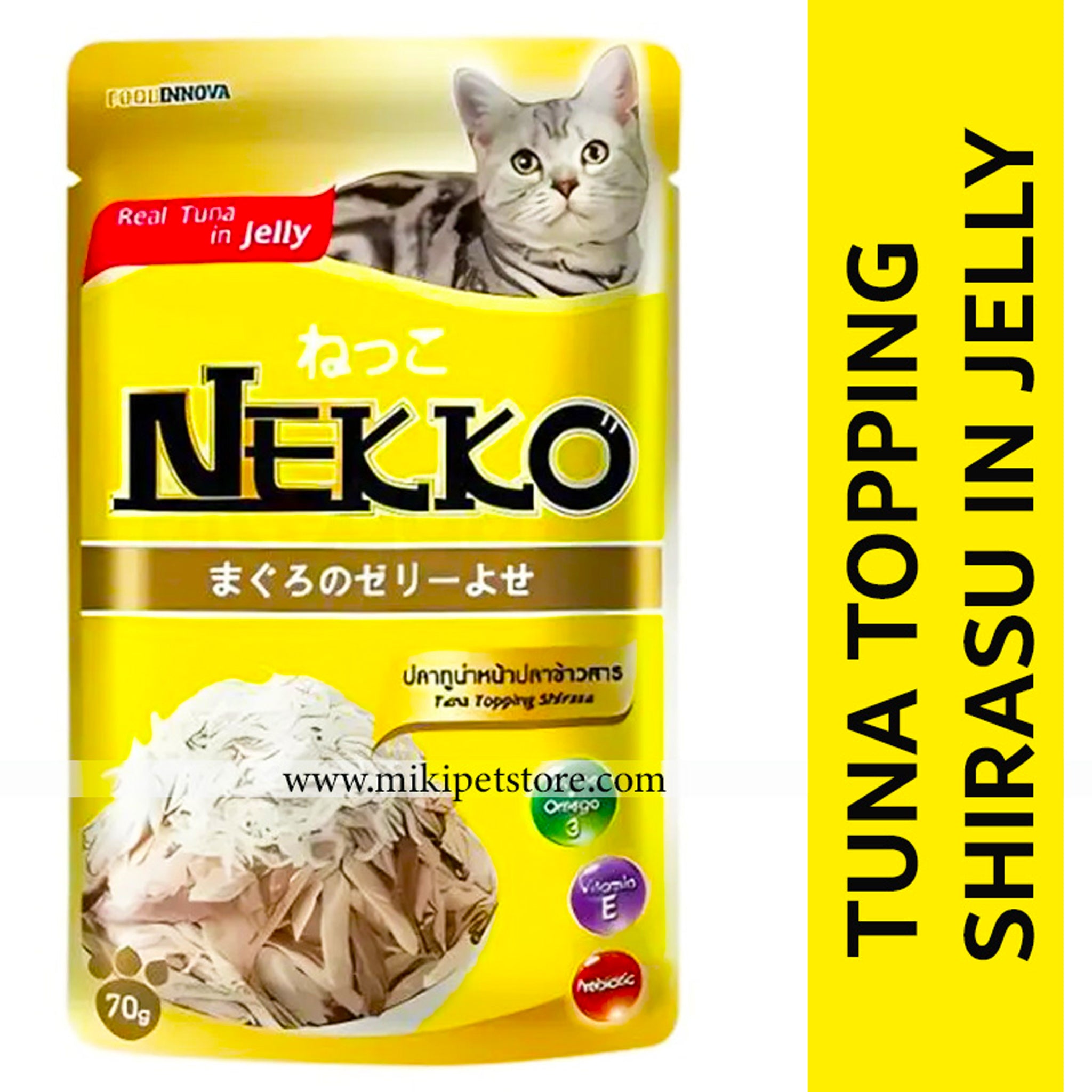 Give your cat a delightful, nutritious meal with Nekko Tuna Topping Shirasu in Jelly. Made with real tuna and topped with Shirasu (baby sardines), this tasty pouch offers a rich, seafood flavor that cats love. The jelly helps provide added moisture, supporting hydration and digestive health. Packed with essential nutrients and vitamins, Nekko Pouch supports your cat's overall well-being. Free from artificial preservatives, it's a healthy, savory option for cats of all ages, making every meal a treat they’ll eagerly anticipate.