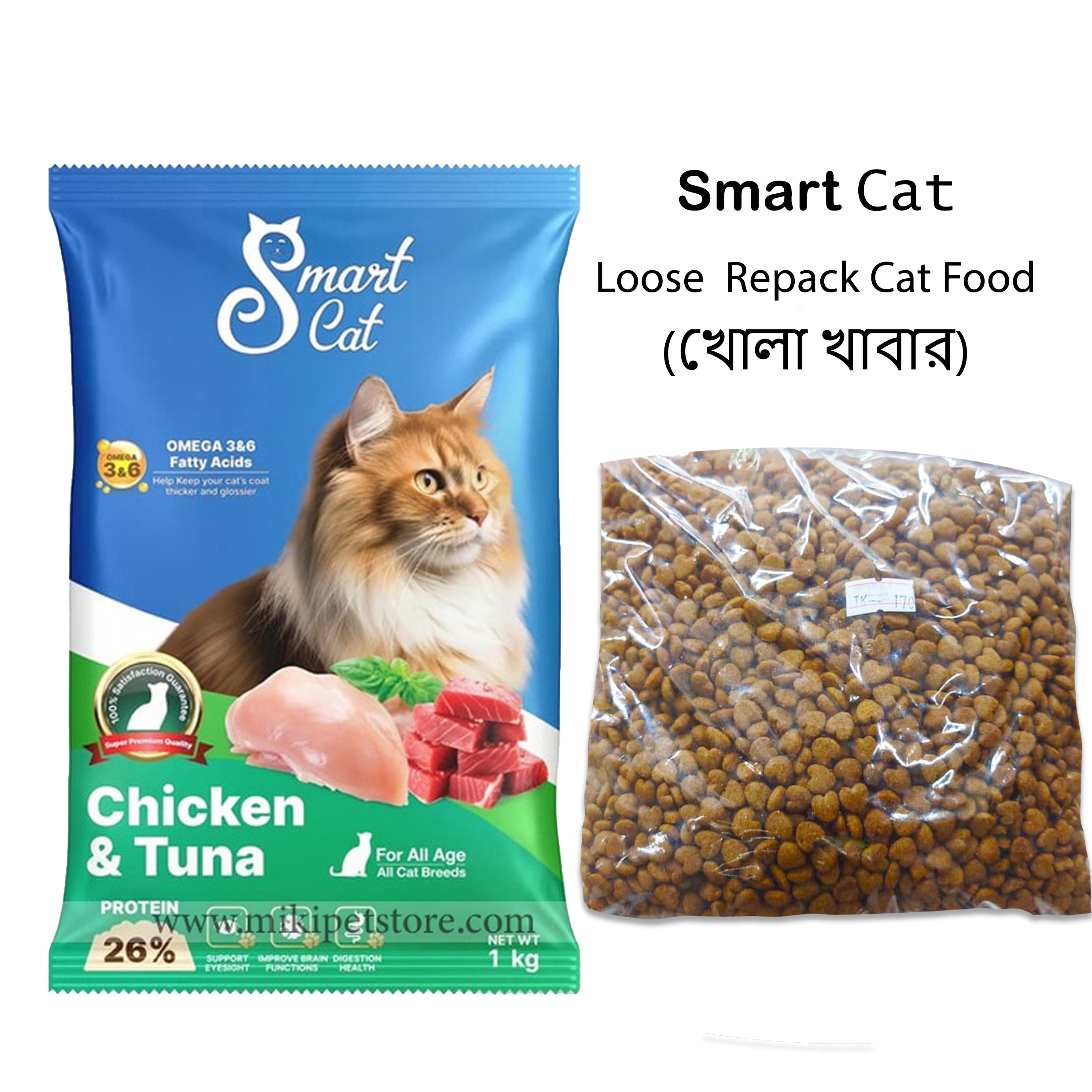 Whether you're in Dhaka, Chittagong, or anywhere else in Bangladesh, you can easily access Smart Cat food through Miki Pet Store's reliable home delivery service or by visiting a showroom.